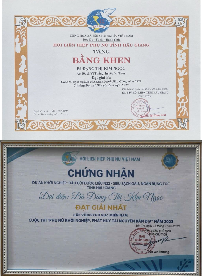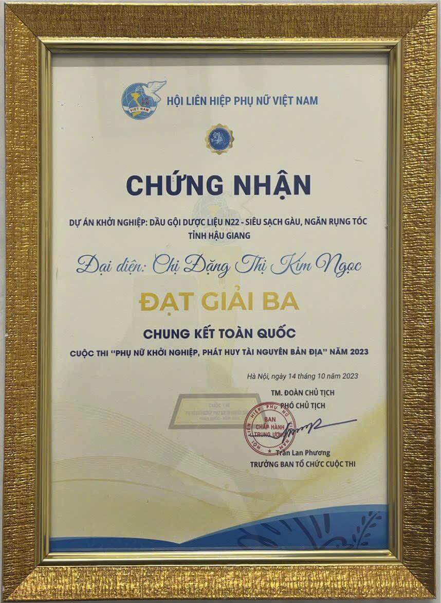 Rời thành thị về nông thôn khởi nghiệp từ bàn tay trắng, chuyện tưởng đùa nhưng đó lại là con đường mà nữ doanh nhân Đặng Thị Kim Ngọc ở xã Vị Thắng, huyện Vị Thủy, tỉnh Hậu Giang chọn lựa sau hơn 20 năm bôn ba đất khách. “Lửa thử vàng, gian nan thử sức” thành quả sau 5 năm miệt mài, nghiên cứu người phụ nữ “chân yếu, tay mềm” gầy dựng thành công sản phẩm dầu gội đầu dược liệu N22 từ những nguyên liệu sẵn có tại địa phương và vinh dự đạt chuẩn OCOP 4 sao trong chương trình Quốc gia mỗi xã một sản phẩm (OCOP) tỉnh Hậu Giang năm 2022.